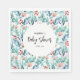 Papel Napkin para chá de fraldas, decorado com imagens adoráveis de plantas aquáticas com esmeraldas e folhas azuis, galhos e flores rosadas macios.