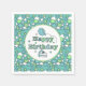 Meninos azuis e verdes Felizes guardanapos da festa de aniversário com balões e gráficos de bolo de aniversário.