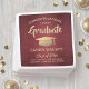 Adicione um toque elegante personalizado à decoração de festas de formatura ou colégios com estes guardanapos de papel burgundy e ouro personalizados. Todo texto é simples de personalizar. Design apresenta um fundo de aço inoxidável piscado, vermelho-marrom, boné de conselho de morteiro de folha falsa, tipografia na moda moderna e caligrafia de script escrita à mão. Observe que o ouro é impresso a cor, não a folha metálica. Parabéns ao formando!