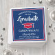 Adicione um toque elegante personalizado à decoração da faculdade ou da festa de formatura de segundo grau com estes guardanapos de papel vermelho, branco e azul personalizados. Todo texto é simples de personalizar. Design apresenta um fundo azul escuro, boné de conselho de argamassa vermelha, tipografia na moda moderna e caligrafia de script de estilo manuscrito. Parabéns ao formando!