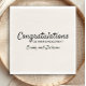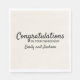 Simples "Parabéns no seu noivado" guardanapos de papel para a festa de noivado. Texto preto (personalizável com a ferramenta design do Zazzle) em um fundo creme/branco (também personalizável). Personalizado com os nomes do novo casal.
