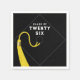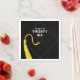 Guardanapos criativos para a classe de 25 formandos com linha engraçada e boné de formatura clássico com fita de ouro sobre fundo preto.