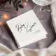 Estes guardanapos de guião preto foram projetados para trazer uma elegância sem esforço ao seu chá de fraldas. Inspirados na caligrafia moderna e na simplicidade do eterno, eles adicionam um toque personalizado à sua configuração de mesa, mantendo o estilo limpo, clássico e inesquecível para os convidados.