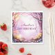 Os guardanapos do aniversário de criança temático da páscoa com luzes brilhantes mágicas, uma floresta encantada com cogumelos, flores brancas e ovos de Páscoa.