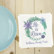 Ele é Risen. Um belo guardanapo religioso com uma bela coroa floral de roxo e verde e o seu monograma personalizado por baixo. Estas lindas flores aquáticas se regozijam com Jesus Cristo. Bonito presente cristão.