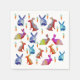 Belo e colorido desenho de coelhos de cor aquosa - Felz pascoa - guardanapos de papel.