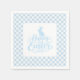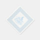 Guardanapo de papel para festa é mostrado no tamanho coquetel branco com uma estampa de Páscoa xadrez azul claro e branco.
