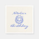 Como podem ver, este guardanapo de aniversário único e elegante tem um modelo bem projetado. Com um bolo de aniversário desenhado com a mão azul com o marco 30 com o marco dentro com o nome escrito com a mão branca. Tudo sobre fundo creme. O que você pode personalizar facilmente ao clicar no botão personalizar.