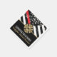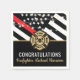 Esta placa de bombeiro apresenta uma bandeira de bombeiro com listras pretas e brancas e uma fina faixa vermelha também. "Parabéns" e o crachá de bombeiro ficam acima do nome do bombeiro graduador. Celebre em estilo!