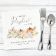 Os guardanapos elegantes para o seu chá de fraldas com "uma pequena abóbora doce está a caminho" na tipografia moderna e uma escrita química com um inchaço cardíaco e aquarelas de abóboras laranja e creme e buquês florais. Especificar o sexo do bebê, se desejado (por exemplo, "está a caminho").
