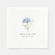 Soft dusty blue watercolor florals paired with clean typography create an elegant, modern look for wedding napkins.