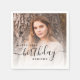 Celebrate her 18th birthday in style with these modern birthday party napkins featuring a custom photo. Easily replace the sample image with a photo of the guest of honor. The word "birthday" appears in elegant black handwriting script. Personalize the text with the name and birthday year in black sans serif font. A white gradient overlay helps make the text pop.