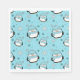 Pinguim bonito vestindo chapéu e cachecol. Legal fundo azul de inverno.