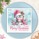 Estes guardanapos de Natal personalizados apresentam um ditado "Feliz Natal" e são decorados com um pinguim bonito num chapéu cor-de-rosa num fundo azul de neve. O modelo facilita a digitação do nome da família e do ano.