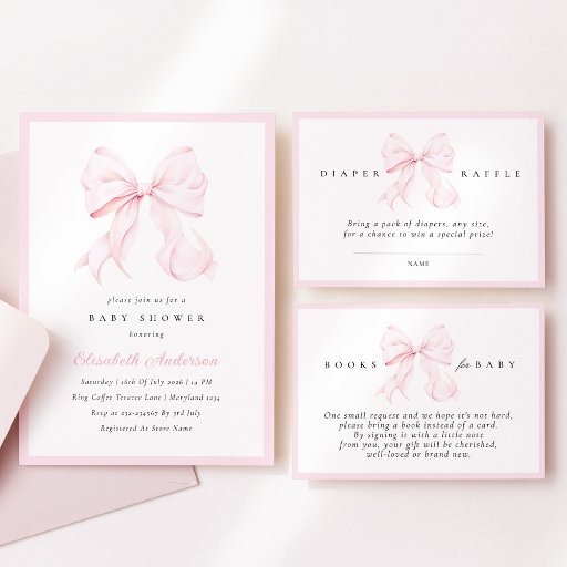Minimal Pink Bow Baby Shower 2026Criado por Adrienn Maier
