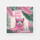 Pink Happy Smiling Lama, este design apresenta um lindo e adorável Lama Feliz Smiling Rosa rodeado por palmeiras verdes e flores tropicais cor-de-rosa.