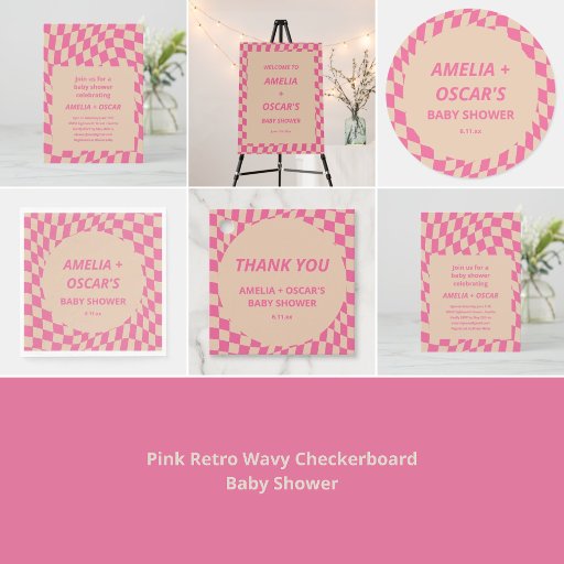 Pink Retro Wavy Checkerboard Baby ShowerCriado por Opal Ellery