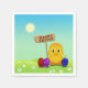Ilustração de Páscoa bonita, com um pintinho segurando um cartaz de madeira com saudação de Felz pascoa, sentado num campo de flores ao lado de ovos coloridos de Páscoa.
