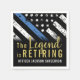 Este design apresenta uma bandeira da polícia com listras pretas e brancas, e uma fina faixa azul de linha também. O texto "A lenda está se aposentando" em ouro fica acima do nome personalizável do polícia oficial, xerife, capitão ou chefe. Celebre este marco em estilo!