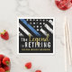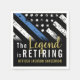Este design apresenta uma bandeira da polícia com listras pretas e brancas, e uma fina faixa azul de linha também. O texto "A lenda está se aposentando" em ouro fica acima do nome personalizável do polícia oficial, xerife, capitão ou chefe. Celebre este marco em estilo!
