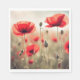 Flores de papoila e botões vermelhos brilhantes num prado ensolarado.