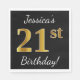 Guardanapo De Papel Preto, Faux Dourado aniversário de 21 anos + Nome