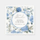 Delicioso visto de decoração de festas do Jardim Azul Hydrangea, guardanapos de papel acrescentam um belo toque final à sua recepção de casamento, chá de panela ou outro evento festivo. Azul pálido e suave, pálido e empoeirado, a marinho, flor azul de castanha azul-castanha, com vegetação foliar de folha legal, com letra escrita à mão. Um conjunto completo de produtos está disponível para compra na coleção. MSP0103