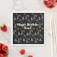 Primavera Whimsical Mod cor de fundo personalizada.guardanapos personalizados, fácil de adicionar nome neles. Azul-aquarela e anã vermelha, criatura branca, cogumelo, flores, sol.