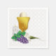 Este artigo Primeiro guardanapo de comunhão vai adicionar um bom toque às suas festividades. A design apresenta um cálice dourado com Eucharist, uvas, uma vela branca e lírio branco sobre o fundo do rosto.