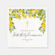 Com limões e folhagens em flor e um elegante crucifixo dourado, este guardanapo chic de Primeira Comunhão pode ser personalizado com as informações do seu evento especial. Concebido por Thisisnotme©