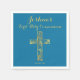 Primeiros guardanapos sagrados modernos para rapazes com uma cruz de ouro num fundo azul. Personalizar com nome, texto e data.