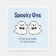 Celebrar o primeiro aniversario mais assustador e fofo com os guardanapos do Dia das Bruxas. Este charmoso design apresenta dois fantasmas adoráveis com arcos pretos e estrelas sobre um fundo cor-de-rosa pastel, adicionando um toque de doçura à estação assustadora. Você pode personalizá-la com suas informações ou editá-la ainda mais na ferramenta design para aumentar ou diminuir o tamanho da fonte.