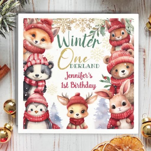 Adicione um toque de magia de inverno à sua comemoração com o nosso primeiro aniversario de Natal dos Animais da "Holanda Inverno" Napkins! Perfeito para o seu dia especial, esses guardanapos trarão um brilho festivo para a festa. Compre agora e faça seu evento brilhar!