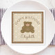Um bonitinho ursinho de ursinho de ursinho bebê primeiro guardanapo de papel de festa de aniversário. O plano de fundo é o padrão de bolinhas bege branco.