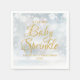 Flocos de neve suaves caem sobre os seus detalhes, definidos em texto dourado elegante em um fundo mágico de inverno, este guardanapo de chá de bebê neutro em estilo chique, chuveirinho ou chá de casal é ideal para o seu evento especial. Criado por Thisisnotme©