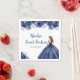 Este doce guardanapo de 16 anos apresenta uma bela princesa num vestido azul de bola marinho com arranjos florais. Isto é perfeito para uma doce festa de aniversário de dezesseis.