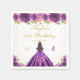 Este elegante e glamouroso guardanapo de festa de aniversário apresenta uma bela princesa com cabelo morena e pele clara num vestido de bola roxa escura. O texto combina o script manuscrito e as fontes sans serif modernas para um aspecto elegante e sofisticado. Os arranjos florais, borboletas e confete de ouro criam a mistura perfeita de rústicos e quicos. Gráficos por www.etsy.com/uk/shop/SunflowerDayLove