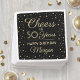 Adicione um toque elegante personalizado às decorações de festa de aniversário com estes guardanapos de papel preto e ouro personalizados. A design apresenta uma caligrafia moderna de escrita personalizável "Saúde a 50 Anos" e pontos de confete de folha falsa de ouro num fundo preto. Por favor, note que o texto é impresso a cor, não a folha metálica. Esta modelo é montada para uma comemoração de 50 anos do ouro, mas é simples de personalizar para um ano diferente. Feliz aniversário!