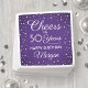 Adicione um toque elegante personalizado às decorações de festa de aniversário com estes guardanapos de papel prateado, roxo, branco e sujo. A design apresenta uma caligrafia moderna de script, personalizável "Saúde a 50 Anos" e simulação de pontos de confetti luminosos em um fundo roxo. Esta modelo é montada para uma celebração de 50 anos, mas é simples de personalizar para um ano diferente. Feliz aniversário!