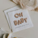 Os guardanapos de chá de fraldas de tendências e diversão apresentam "OH BABY" em letras de balões de ouro rosa, com o nome e a data de chá da mãe por baixo em letras negras modernas.