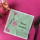 Adicione um toque especial à sua quinceañera (ou qualquer outro evento) com guardanapos personalizados. Estes guardanapos estão prontos para serem personalizados com sua mensagem e data personalizadas e apresentam um fundo verde da casa da moeda com uma ilustração das flores floridas de cereja rosa em um galho.