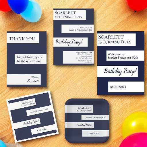 Modern Simple Navy Blue White Elegant BirthdayCriado por Mohamed Sherif