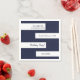 Este elegante guardanapo azul e branco marinho é perfeito para um aniversário moderno. o simples design apresenta uma elegante caligrafia azul marinho em listras brancas sobre um fundo azul marinho.