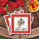 Os guardanapos do partido Elegante Derby da fronteira vermelha apresentam cavalos de corrida e jockeys a caminho da linha de chegada. CORRESPONDENTE a itens na nossa coleção.