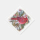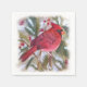 Belo Cardeal Vermelho com sotaques pretos, empoleirados em um galho holandês castanho verde e folheado coberto de neve cercado de frutas vermelhas