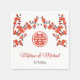 Estes guardanapos chineses apresentam flores de cereja vermelha e um símbolo vermelho de felicidade dupla em um fundo branco. Nomes de noiva e noiva em um roteiro elegante tradicional. O terno de casamento está disponível. .