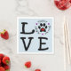 Estes guardanapos de papel-coquetel mostram seu amor por animais e resgate animal. A palavra "amor" é escrita com a letra O representada por uma pata com um dentro vermelho cercado pelas palavras adotar, promover e resgatar separados por pegadas roxas. Excelente de abrigos para animais a utilizar durante a angariação de fundos ou eventos.