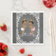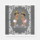 Guardanapos de revelação de gênero com príncipe e princesa étnicos adoráveis em um fundo de banner de quadro-negro espiral. Você pode adicionar o texto de sua escolha e alterar o texto do banner nestes guardanapos de revelação de gênero étnico fofos.