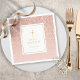 Apresentando elegante ombre rosa dourado e um elegante crucifixo de ouro, este batismo chic, guardanapo batizante pode ser personalizado com suas informações especiais sobre eventos. Projetado por Thisnotme©