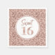 Guardanapos personalizáveis para uma festa de aniversário doce 16 com padrão de brilho rosa dourado.